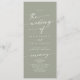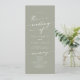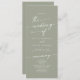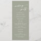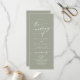 Este programa de bodas de moda bovina de té verde sabio es perfecto para una ceremonia minimalista de bodas. El estilo bohemio moderno de tonos verde claro neutro presenta una caligrafía rústica sencilla con un estilo único y clásico. Personalice su programa de boda con sus nombres, fecha de boda, ubicación, orden de servicio, fiesta de boda y, opcionalmente, en el recuerdo de amor.
