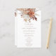 Programa Boho Rustic Terracotta Florals Fall Wedding. Un precio económico de 5.5 x 8.5" Hermosas flores en colores otoñales decoran la parte superior de cada lado con un guión establecido para la bienvenida. El resto del texto en ambos lados puede ser fácilmente personalizado.