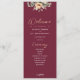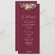 Programa de bodas de color borgoña, con flores acuáticas y follaje de jardín. Un diseño botánico contemporáneo, sencillo pero elegante, inspirado en el estilo boho vintage, con monograma en la parte posterior.