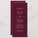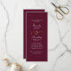 Este guión blanco impreso en un oscuro fondo burdeos con una ampersa dorada es un programa elegante para tu día de boda. Personalice toda la información, incluidos los detalles de la ceremonia y los asistentes en la parte posterior con el mismo tipo de letra del guión