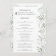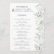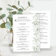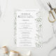 This Puerto Rican–inspired wedding program embraces a serene, nature-driven aesthetic featuring elegant leafy illustrations along the edges, capturing the lush essence of tropical foliage. The soft green botanical artwork delicately frames the ceremony details and wedding party list, creating a seamless balance between modern minimalism and natural beauty. Printed on a clean white background with refined typography, this design perfectly complements outdoor, garden, or destination weddings with a tropical or coastal flair. The overall look celebrates organic greenery, sophistication, and island-inspired romance, making it ideal for eco-friendly or botanical-themed weddings.