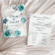 Guía a tus invitados a través de tu ceremonia con este programa de boda botánico de flores silvestres turquesas. Suaves flores de acuarela en ricos tonos turquesa enmarcan los detalles de tu ceremonia con elegancia y claridad.