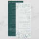 Elementos: fuentes seriif clásicas en contraste con verde azulado oscuro en un fondo gris acuático claro. Diseño tradicional que incluye nombres completos, nombres completos primarios e iniciales. Acentos de burbuja geométrica. Colores: Verde, verde azulado oscuro, gris, acuático Temas: elegante, tradicional, formal, moderno, geométrico, fresco, moda urbana, sobrio, neutro. Colección: Elegante Colección de Bodas Verde azulados geométricos y oscuros de las burbujas modernas. Tipo de producto: Programa