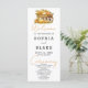 Presentamos nuestro programa White Harvest Whimsy Wedding, una deliciosa elección para parejas que buscan una mezcla de elegancia moderna y encanto bohemio para su celebración de otoño o otoño. El blanco resplandeciente del fondo crea el escenario para un diseño cautivador con un encantador carrito lleno de calabazas naranjas claras, calabazas naranjas oscuras y calabazas blancas, todo enclavado en medio de la vegetación exuberante y la hierba. El programa White Harvest Whimsy Wedding captura sin esfuerzo la esencia de la temporada, ofreciendo una visión fresca y elegante de la estética de otoño. Los variados tonos de las calabazas y la abundancia de la vegetación crean un cuadro visualmente atractivo que da cuenta de la belleza de la naturaleza durante el otoño. Este programa es ideal para parejas que desean un toque de fantasía y una celebración que integra perfectamente el diseño moderno con la calidez del otoño. Pasando a la parte trasera del programa, encontrarás una lista cuidadosamente seleccionada de la fiesta de boda en negro y gris clásico. El tipo de letra de bloque predominantemente simple garantiza claridad y legibilidad, manteniendo una estética limpia y elegante. Añadiendo un toque de capricho y personalización, las palabras "Bienvenida", "Ceremonia" y "Fiesta de bodas" se presentan en un tipo de letra de escritura decorativa bonito. Estos elementos guionados añaden una capa adicional de encanto e individualidad al programa, creando un keepsake que refleja el espíritu único de su día especial. Elija el programa White Harvest Whimsy Wedding para infundir a su boda la belleza intemporal del otoño. Con su diseño cautivador y detalles cuidadosos, este programa es el complemento perfecto para las parejas que buscan una celebración que maravillosamente abarca el encanto distintivo de la temporada de otoño.