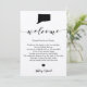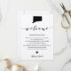 Esta tarjeta moderna y elegante es el lugar perfecto para las bolsas de bienvenida de su hotel. Introduzca los eventos principales y una nota personalizada para ayudar a sus invitados a navegar el fin de semana.