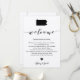 Esta tarjeta moderna y elegante es el lugar perfecto para las bolsas de bienvenida de su hotel. Introduzca los eventos principales y una nota personalizada para ayudar a sus invitados a navegar el fin de semana.