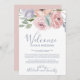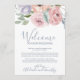 Estas tarjetas de carta de bienvenida y itinerario con florales rosa polvoriento son perfectas para una boda de primavera o verano. El diseño floral romántico presenta flores de lavanda púrpura, rosa y melocotón dispuestas en un hermoso ramo pastel suave. La parte frontal de la tarjeta presenta una carta de bienvenida y la parte posterior presenta el itinerario de la boda. Estas notas son perfectas para bodas de destino y bolsas de bienvenida para huéspedes de hotel.