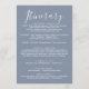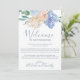 Estas cartas de bienvenida y itinerario de florales azul polvoriento son perfectas para una boda de primavera o verano. El delicado diseño presenta peonías azules claras dispuestas con flores de durazno y crema en un hermoso ramo. La parte frontal de la tarjeta presenta una carta de bienvenida y la parte posterior presenta el itinerario de la boda. Estas notas son perfectas para bodas de destino y bolsas de bienvenida para huéspedes de hotel.