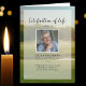 Una celebración especial del programa de funeral de vida con una foto de fondo de un campo de golf - cambia fácilmente la foto de fondo del campo de golf con su propia foto/curso. Añade una foto de tu ser querido al frente y al reverso y personalizado de texto a los cuatro lados - un obituario, orden del servicio, poema, mensaje de agradecimiento, etc. Este programa es tan fácil de personalizar - sólo tienes que hacer clic en "personalizar esta plantilla" para cambiar el texto y las fotos o hacer clic en editar para que sea aún más personalizar. Este es realmente un programa único que la gente apreciará para siempre.