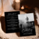 Esta tarjeta de servicio conmemorativo está diseñada para honrar y celebrar la vida de un ser querido con calidez y dignidad. La parte frontal presenta una fotografía emotiva que captura un momento alegre, con las palabras "Celebrando la vida de" en una elegante tipografía script, seguida del nombre y las fechas de vida de su ser querido en una tipografía moderna y limpia. La imagen, junto con el mensaje de celebración, establece un tono positivo para recordar la vida del individuo. La parte trasera de la tarjeta presenta un "Orden de servicio" en blanco sobre un fondo negro elegante para una fácil lectura. Esta sección incluye sugerencias para estructurar el servicio, desde la bienvenida a los asistentes hasta el elogio, actividades de celebración y pensamientos finales, todo diseñado para guiar el evento de una manera que refleje el espíritu de la persona que se recuerda. Esta tarjeta es una hermosa forma de conmemorar una vida, ofreciendo un tributo respetuoso y edificante.