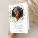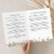 Este elegante programa de celebración floral de la vida combina un diseño atemporal con una personalización sincera para crear un recuerdo impreso significativo para los servicios conmemorativos. La portada presenta un marco de foto circular rodeado de suaves flores de acuarela en tonos suaves de blanco, rosado, verde y dorado, con campos de nombre y fecha personalizables debajo de la frase editable "En amorosa memoria". En el interior, un diseño limpio proporciona secciones organizadas para el orden del servicio, obituario o resumen de la vida, y agradecimientos en la parte posterior, todos hermosamente acentuados con ilustraciones florales coincidentes a lo largo del borde inferior. Diseñado para la claridad y la resonancia emocional, este programa de funeral ofrece espacio para encabezados personalizados, tributos reflexivos y mensajes de gratitud. Perfecto para funerales tradicionales, servicios conmemorativos o celebraciones de eventos de la vida, este programa impreso sirve como guía de servicio y recuerdo apreciado para familiares y invitados. Su diseño botánico suave y su diseño estructurado traen consuelo, calidez y tributo duradero a la memoria de un ser querido.