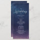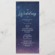 Guíe a sus invitados durante su día especial con este elegante programa de bodas celestes. Con una marina de ensueño y un fondo violento del cielo estrellado nocturno, este programa de doble cara ofrece mucho espacio para tu orden de ceremonia, nombres de fiestas de boda y un sincero mensaje de agradecimiento. Perfecto para bodas cósmicos, espectaculares o románticos con temática de cielo nocturno. Personalice fácilmente para crear una hermosa y cohesiva apariencia para su celebración celestial del boda.