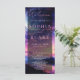 Programa de Bodas de Sueños Celestes: Guía Mágica de tu Día Especial guía a tus invitados a través de la ceremonia de tu boda con un programa tan impresionante como el amor que compartas. El Programa de Bodas de Sueños Celestes está diseñado para parejas que se sienten atraídas por la belleza del cosmos, con un cielo fascinante en tonos azules, rosas y morados. Una luna llena radiante brilla sobre un cielo estrellado, con nubes de deriva que crean un ambiente de ensueño. Debajo, el océano tranquilo, las majestuosas montañas y los árboles serenos completan el paisaje de inspiración celeste, convirtiéndolo en el programa perfecto para los amantes de la naturaleza, los miradores y los místicos. Elegantemente diseñado, el texto se muestra en una mezcla de escritura sofisticada y tipos de letra de bloques modernos en tonos morados y blancos crudos, asegurando que sus detalles de la ceremonia sean fáciles de leer y manteniendo un sentido de belleza etérea. Desde el orden de los eventos hasta las presentaciones de la fiesta de bodas y notas especiales, este programa proporciona todos los detalles esenciales que sus invitados necesitan mientras sirven como una pieza digna de seguir en su día de bodas. Como parte de una suite boda bien coordinada, este programa se empareja perfectamente con invitaciones coincidentes, Save the Dates, tarjetas RSVP y más. Ya sea que estés diciendo "lo hago" bajo las estrellas, al lado del océano, o rodeado de las maravillas de la naturaleza, este diseño refleja la magia y el romance de tu viaje juntos. Que tu programa de bodas sea más que un mero itinerario, que sea una impresionante pieza de arte que capte la esencia de tu historia de amor celestial. Con el programa de Bodas de Sueños Celestes, tus invitados sentirán la magia de tu día desde el primer momento.