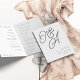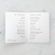 Una hermosa tarjeta de programa de bodas basada en tipografía con sus iniciales en letras de guiones sobredimensionadas en la portada, en tono de tonos para un efecto de marca de agua. Personalice con sus detalles de la ceremonia y la fiesta de boda, y agregue texto personalizado adicional al reverso. Nuestra colorida ceniza hace una declaración clásica con letras negras suaves sobre un fondo blanco y nítido.