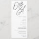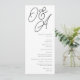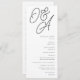 Una hermosa tarjeta de programa de bodas basada en tipografía con sus iniciales en letras de guiones sobredimensionadas en la parte superior, en tono de tonos para un efecto de marca de agua. Personaliza con tus detalles de la ceremonia debajo, y personalizar la parte de atrás con tu fiesta de boda. Nuestra colorida ceniza hace una declaración clásica con letras negras suaves sobre un fondo blanco y nítido.