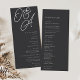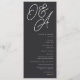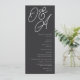 Una hermosa tarjeta de programa de bodas basada en tipografía con sus iniciales en letras de guiones sobredimensionadas en la parte superior, en tono de tonos para un efecto de marca de agua. Personaliza con tus detalles de la ceremonia debajo, y personalizar la parte de atrás con tu fiesta de boda. Nuestra colorida Ash hace una declaración clásica con letras nítidas blancas en un suave fondo negro.
