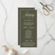Elegante programa de ceremonias Bodas, con una tarjeta de 4 x 9 pulgadas (larga). Está diseñado con acento de desplazamiento que puede ser personalizado con texto personalizado/ personalizado para su fiesta nupcial, detalles de la ceremonia, notas conmemorativas y mensaje de agradecimiento. Si está buscando otros tipos y tamaños de tarjetas de programa, busque en nuestra sección de colección de tarjetas de programa correspondiente.