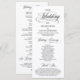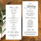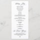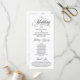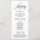 Elegante y sofisticado programa de ceremonia de boda en tarjeta de 4x9 pulgadas (larga) con guión en blanco y negro. Está diseñado con un acento de desplazamiento que se puede personalizar con texto personalizado para su fiesta de bodas, detalles de la ceremonia, notas conmemorativas y mensaje de agradecimiento.