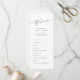 Este sencillo programa de ceremonias católicas católicas tradicionales es su compañero perfecto para guiar a los huéspedes durante su día especial. Su diseño limpio y su diseño claro reflejan la tradición atemporal de un boda católico romano, lo que hace que sea fácil para todos seguir el servicio. Es un toque elegante y moderno que también es asequible, ideal para las parejas que buscan un toque minimalista en su itinerario boda. Desde la procesión hasta los votos, este programa es un sincero 'gracias' a la familia y amigos que se unen a su unión.
