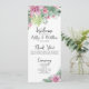 Programa de Ceremonia de Boda Elegante Tropical Floral Chic. Con acentos botánicos rosados y verdes contrastados por letras negras y blancas. Un diseño tropical que abraza la belleza tranquila de la naturaleza mezclada con un toque juguetón que seguramente te ayudará a divertirte. Una mezcla de calmantes hojas tropicales verdes, incluyendo hojas de plátano, palmas, hojas de monstera y plantas de princesa rosa, junto con flores de orquídea púrpura-rosa y flor de protea, entrelazadas con varios otros follajes. Mejorado por una tipografía moderna manuscrita o de letra script, esta impresión encantadora irradia encanto y sofisticación. Este diseño versátil trae un sentido de paraíso tropical a cualquier entorno u ocasión especial, haciéndolo perfecto para una boda de destino, o simplemente cuando deseas agregar un toque tropical.