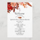 Flores, plumas y abundante naranja colorido, roya, rojo, borgoña, marsala, hojas de durazno y follaje. Con elementos de la línea dibujada a mano, fuentes con letras a mano y el programa de ceremonias de Boda de borde superior de Bonito! ~ Revisa mi tienda para ver toda la suite boda para este diseño!