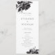 Programa de bodas de personalizable moderno y minimalista. Cuenta con un rosa de acuarela negra y vegetación. Personalice agregando nombres, ceremonia de boda y un mensaje de agradecimiento. Estos programas de bodas florales negras son perfectos para cualquier tema boda y temporada.
