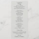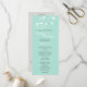 Entrega estas elegantes tarjetas para el programa de ceremonia en rack en tu boda. Diseño de viñas blancas con colores verde menta y gris claro (gris). La parte delantera de la tarjeta tiene la lista del programa de la ceremonia, la parte trasera de la tarjeta tiene la lista de la fiesta de boda y una nota de agradecimiento de la novia y el novio. Perfecto para cualquier tema boda de primavera o verano.