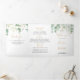 Este clásico programa de bodas triplias de oro de eucalipto es perfecto para complementar a un simple boda. El diseño presenta un eucalipto verde acuático con hojas pintadas a mano en oro.
