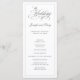 Con elegancia clásica, este programa de bodas utiliza un guión precioso que florece la caligrafía destacando de forma destacada el frente del programa. Un sencillo borde gris plateado enmarca tu texto con un estilo contemporáneo. El texto restante en la parte delantera y posterior se configuran en una plantilla fácil de usar donde se puede editar con el programa de boda y los participantes de la fiesta de boda. Puede agregar o eliminar líneas de texto, cambiar el tamaño o cambiar el estilo de fuente, así como mover el texto para adaptarlo a sus necesidades. Para simplificar la personalización de este programa, edite primero el texto que se muestra en la plantilla de diseño con sus entradas. A continuación, elija "personalizar más lejos" para mover las cosas y volver a colocar el texto según sea necesario para adaptarse a la disposición de texto deseada.