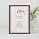 These elegant, simple wedding welcome programs feature a dark brown border and a romantic neutral color palette of espresso brown, creamy ivory, and soft mocha. There is a mix of classic text and modern calligraphy for a classy and minimalist design perfect for your timeless, formal or rustic country western wedding.