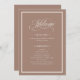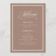 These elegant, neutral palette wedding welcome programs feature an ivory cream border and a soft, mocha taupe background. There is a mix of classic text and modern calligraphy for a classy and minimalist design perfect for your timeless, formal or rustic wedding.