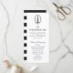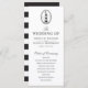 Añade tus detalles para crear una tarjeta de programa de bodas única y elegante pero moderna en un estilo náutico. Este diseño cuenta con un ilustracion vintage de faro náutico, seguido de los detalles que hay debajo. En el reverso, una serie de elegantes rayas blancas y negras completan el conjunto. Todos los elementos de este elemento se pueden ajustar mediante la función de personalización. Disfruta creando y haciéndolo propio.