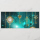 El oro, las llaves antiguas con engranajes y diales cuelgan de las cadenas de oro sobre un fondo verde luminoso.