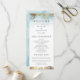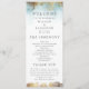 Programa de bodas elegante y etéreo con pintura azul acuarela con falso purpurina de oro. El programa enumera el programa de la ceremonia, el mensaje de agradecimiento y los miembros de la fiesta de bodas.