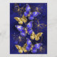 Composición de lujosas mariposas de zafiro y joyas de oro sobre fondo de textura azul.