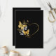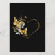 Marco dorado en forma de corazón, decorado con oro, joyas y mariposas blancas sobre fondo negro.