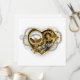 Corazón mecánico, volumétrico, de vapor punk con manómetro de presión, acero y engranajes dorados sobre fondo blanco. Estilo Steampunk.