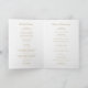 Elegante programa de boda doblado con un diseño limpio y atemporal con su monograma dentro de una cresta de corona.