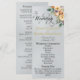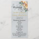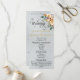 Este diseño romántico presenta un hermoso ramo floral de acuarela en crema, detalles de la ceremonia de boda y agradecimiento en la parte delantera con los miembros del cortejo nupcial en la parte posterior. Diseñado para coordinar con la colección "Corona floral y botánica". Para cambiar los detalles, haga clic en «Personalizar». Para mover el texto o cambiar el tamaño, la fuente o el color del texto, haga clic en «Haga clic para personalizar aún más»