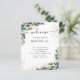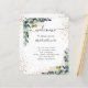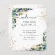 Fondo blanco y elegante, decorado con vegetación eucalipto, follaje dorado y polvo falso purpurina dorado. Personalice y agregue sus nombres y la cronología del día de la boda.