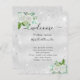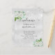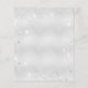 Un fondo falso de color plateado metálico, decorado con flores blancas de color blanco, vegetación eucaliptos y polvo falso de purpurina plateado. Personalice y agregue sus nombres y la cronología del día de la boda.
