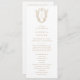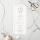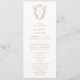 Este elegante programa de bodas de oro y blanco clásico de la colección Daphne es perfecto para un boda tradicional. El diseño es sencillo pero clásico y cuenta con un elegante monograma escudo ornamentado con flores y vegetación que rodea las iniciales de la pareja. Incluya los nombres de la pareja, la fecha y ubicación del boda, mensaje de agradecimiento, orden de servicio, fiesta de boda y un monumento opcional "en memoria amorosa".