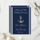 Esta tarjeta del programa de bodas de Ancla Náutica está diseñada en la Marina, con rayas blancas y texto. El Front incluye los nombres de la novia y de Groom y la fecha de Boda. El reverso incluye el pedido de servicio de la ceremonia de Boda y su nota de agradecimiento. Para personalizar, simplemente inserte su texto en nuestra plantilla sencilla, reemplazando el texto de ejemplo.