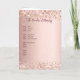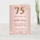 Un fondo con gradiente dorado con brillo falso. El nombre está escrito con una tipografía manuscrita de estilo moderno con color dorado rosa oscuro. El número 75 está escrito con una fuente de estilo globo, manuscrita. Texto de bienvenida, foto, programa y una biografía en el reverso.