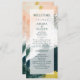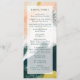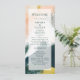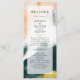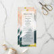 Este colorido programa de bodas abstractas es perfecto para su boda boho moderno y único. Pintado a mano con pinceladas texturadas de verde esmeralda oscuro, melocotón y mostaza, todo cubierto con una minimalista plaza transparente, seguro que le dará a su ocasión un ambiente bohemio, sencillo y rústico.
