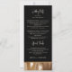 Guíe a sus invitados con gracia usando nuestra tarjeta de programa de boda. La tipografía minimalista de moda brilla contra un lienzo de color oscuro adornado con falsos acentos dorados. El overlay negro muestra con gracia los detalles del programa de boda en ambos lados.