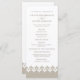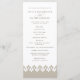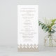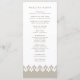 Nuestro elegante programa de bodas presenta los detalles de su ceremonia en un suave bronceado de arena, acentuado con un borde geométrico inspirado en Marruecos a lo largo del fondo en linen beige. Revertir muestra los miembros de la fiesta de bodas con campos de texto fácilmente modificables. Coordina con nuestra colección de invitaciones a bodas árabes en Champagne. Utilice los campos de plantilla para agregar la información de la ceremonia y de la fiesta nupcial y, a continuación, haga clic en "Personalizar" para cambiar la posición de los elementos si fuera necesario. ¿Necesitas ayuda? Contáctame a través del enlace "Preguntar a este diseñador" en esta página.