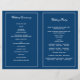 Programa de boda de invierno moderno azul y blanco con folleto doblado que presenta un borde blanco de copos de nieve en un fondo azul brillante. Una opción perfecta para una boda de diciembre de invierno. Tendrás que doblar en el centro para tener un programa doblado. Elige solo el tipo de papel de valor ya que se dobla bien.