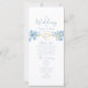 Elegante, botánico, floral, moderno, boho de doble cara polvoriento programa de bodas azul con corazón de cuerda dorada, flores silvestres perwinkle y sencillo guión de caligrafía.
