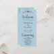 Eleva tu ceremonia de boda a alturas cósmicas con nuestro programa de Bodas Celestes de la Noche Luz Azul Luz Luna. Este encantador programa está diseñado para parejas que buscan un toque celeste, creando un ambiente único y místico. Las modernas fases azules del diseño de la luna sobre el fondo azul claro evocan una sensación de asombro celeste, lo que lo convierte en una elección ideal para aquellos que quieren que su boda refleje la magia del cosmos. El color azul claro aporta serenidad y tranquilidad, marcando el tono de una celebración de amor verdaderamente celeste. En la parte posterior del programa, encontrarás una lista cuidadosamente organizada de la fiesta de boda, presentada en un texto clásico en negro y gris, con un sencillo tipo de letra de bloque. Las palabras "Bienvenidos", "Ceremonia" y "Fiesta de la Boda" están bellamente resaltadas en una fuente decorativa de escritura, agregando un toque de elegancia y romance al diseño general. Nuestro Programa de Bodas Celestes Nocturnos Nocturnos Luz Azul Luz Luna no es solamente un pedazo de papel; es una invitación a una celebración celestial donde el amor y el cosmos se alinean. Ya sea que planee un boda de temática celeste o simplemente quiera un programa que destaque, este diseño celeste es la elección perfecta. Deja que las fases de la luna iluminen tu historia de amor y conviertan tu día de boda en una obra maestra celestial. Elija nuestro Programa de Bodas Celestes Nocturnos Nocturnos Luz Azul Luz Luna para un boda que está realmente fuera de este mundo.